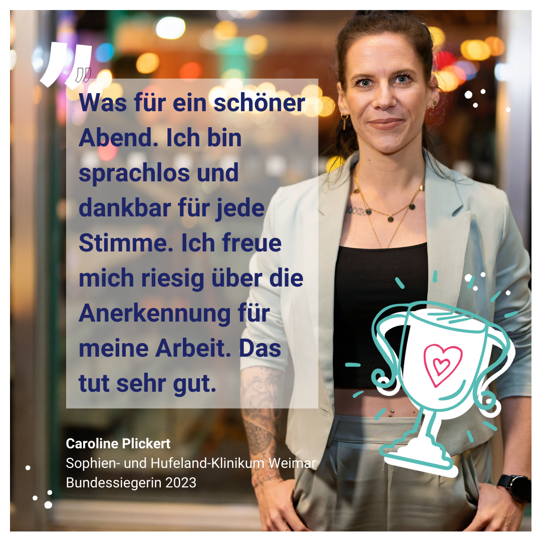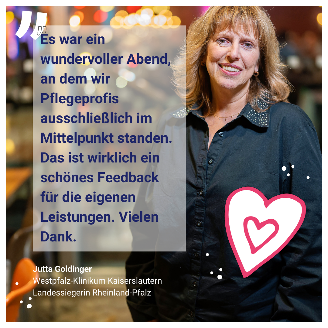 Emotionale Momente: Auf dem großen "Fest der Pflegeprofis" in Berlin haben wir die diesjährigen Siegerinnen und Sieger ausgezeichnet. Katrin Staffler, die Pflegebevollmächtigte der Bundesregierung und Schirmherrin des Wettbewerbs hat persönlich die Preisträger im Reichstagsgebäude ausgezeichnet. Alle 16 Landessieger waren vor Ort und haben mit uns gemeinsam die Pflege gefeiert.