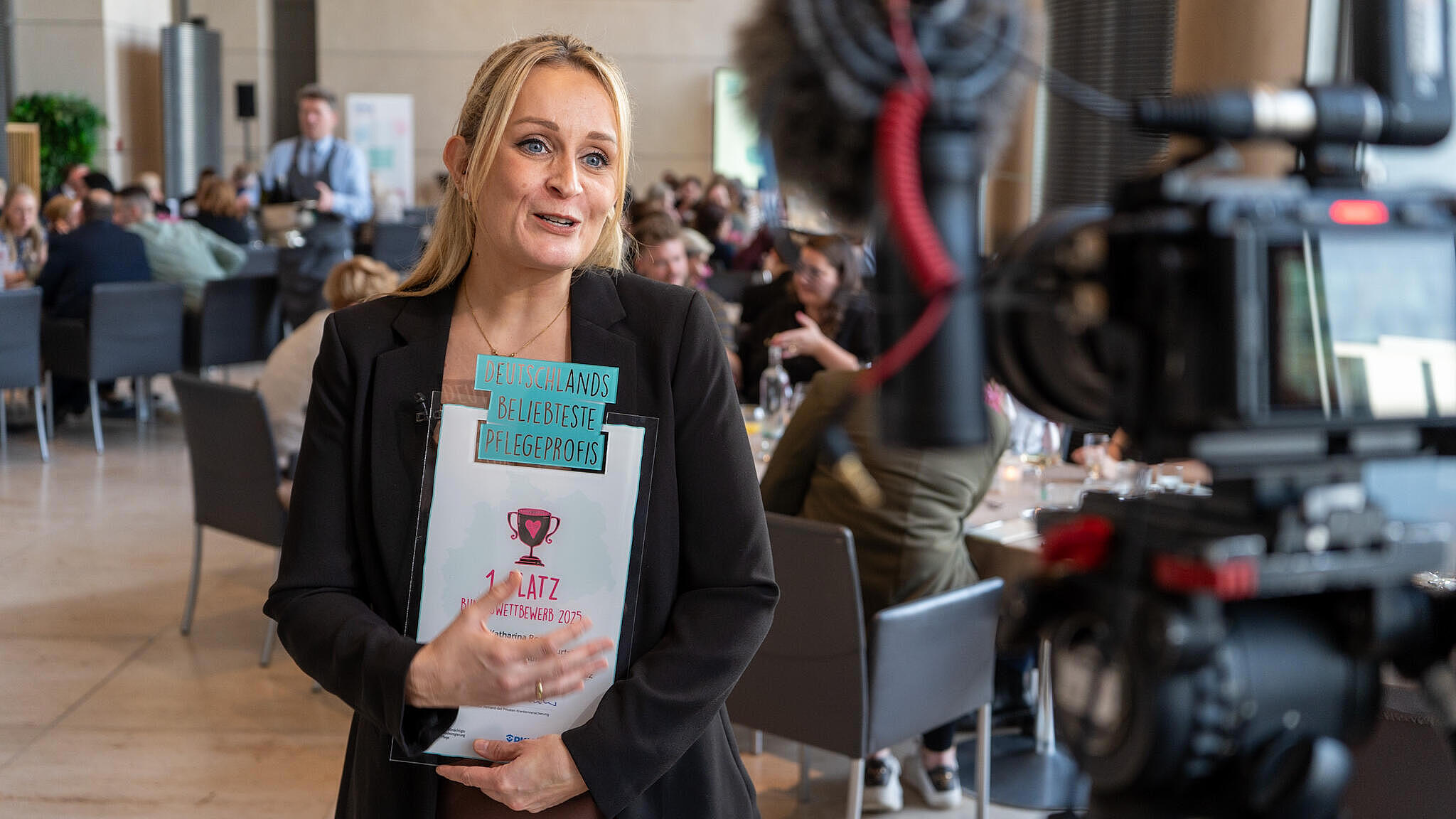 Emotionale Momente: Auf dem großen "Fest der Pflegeprofis" in Berlin haben wir die diesjährigen Siegerinnen und Sieger ausgezeichnet. Katrin Staffler, die Pflegebevollmächtigte der Bundesregierung und Schirmherrin des Wettbewerbs hat persönlich die Preisträger im Reichstagsgebäude ausgezeichnet. Alle 16 Landessieger waren vor Ort und haben mit uns gemeinsam die Pflege gefeiert.