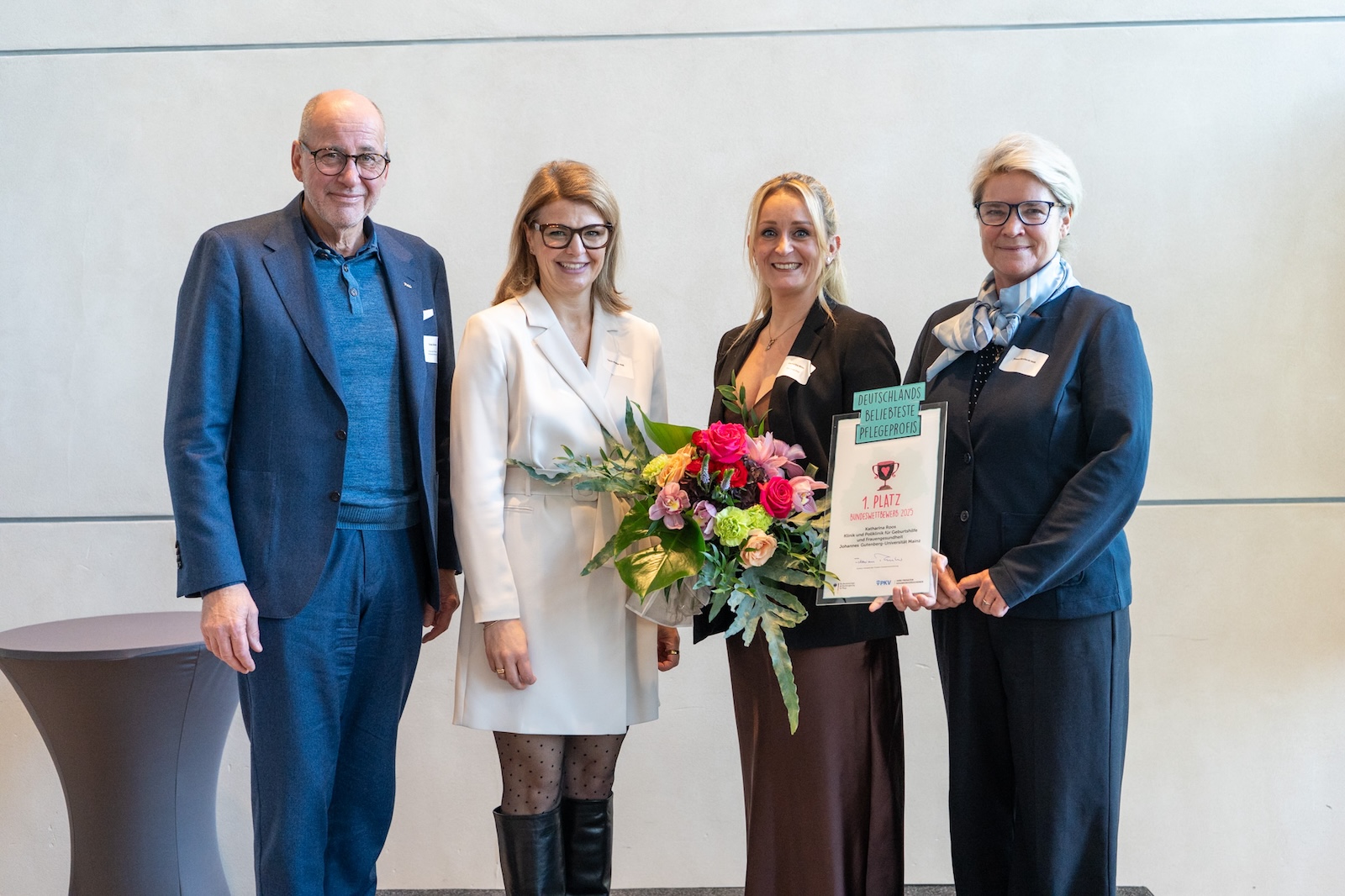 Starker dritter Sieger: Das Pflegeteam des Elisabeth-Hospiz in Lohmar hatte sich in Nordrhein-Westfalen unter 632 nominierten Pflegekräften und Teams durchgesetzt – ein deutliches Zeichen für die große Wertschätzung ihrer Arbeit und ein klarer Ausdruck der Anerkennung und Verbundenheit vieler Menschen. Im Bundesvoting erreichte das Team mit 5.187 Stimmen Rang drei. Im Hospiz arbeiten 27 hochengagierte Pflegefachkräfte, die gemeinsam bis zu 16 schwerkranke Menschen begleiten. Ihre Patientinnen und Patienten bezeichnen sie liebevoll als Gäste – und diese fühlen sich auch so: willkommen, gesehen, respektiert. Nicht von ungefähr wurde das Pflegeteam vom Sohn einer ehemaligen Gästin nominiert, der heute noch dankbar für die Versorgung seiner Mutter ist.